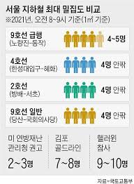 9호선 급행 노선은 특히 여의도~고속터미널 구간에서 심한 혼잡을 보여요. 평일 출근 시간(7시 30분9시)과 퇴근 시간(6시7시 30분)에는 지옥철 수준으로 붐빌 수 있어요.