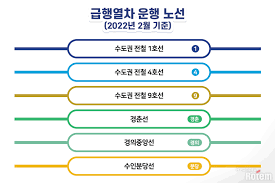 - 급행 열차: 정차역 13개, 평균 소요 시간 단축